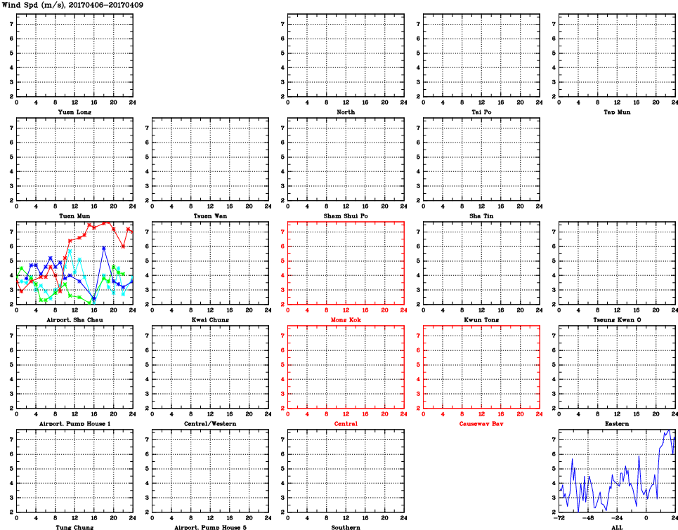 | Air Quality Data Time Series for WS (2017/04/09) | ( Line colors: Day -3 Day -2 Day -1 Current day ) | 2D Map Current AQHI |