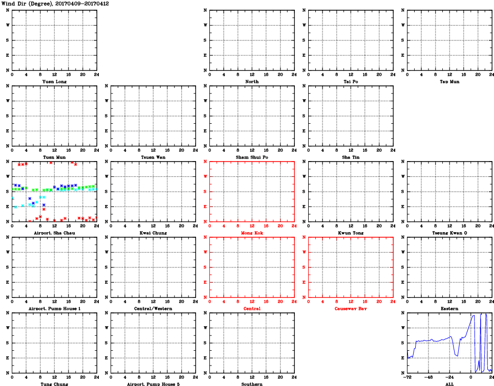 | Air Quality Data Time Series for WD (2017/04/12) | ( Line colors: Day -3 Day -2 Day -1 Current day ) | 2D Map Current AQHI |