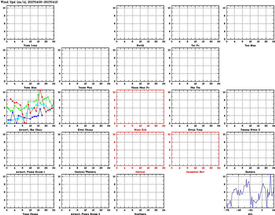 | Air Quality Data Time Series for WS (2017/04/12) | ( Line colors: Day -3 Day -2 Day -1 Current day ) | 2D Map Current AQHI |