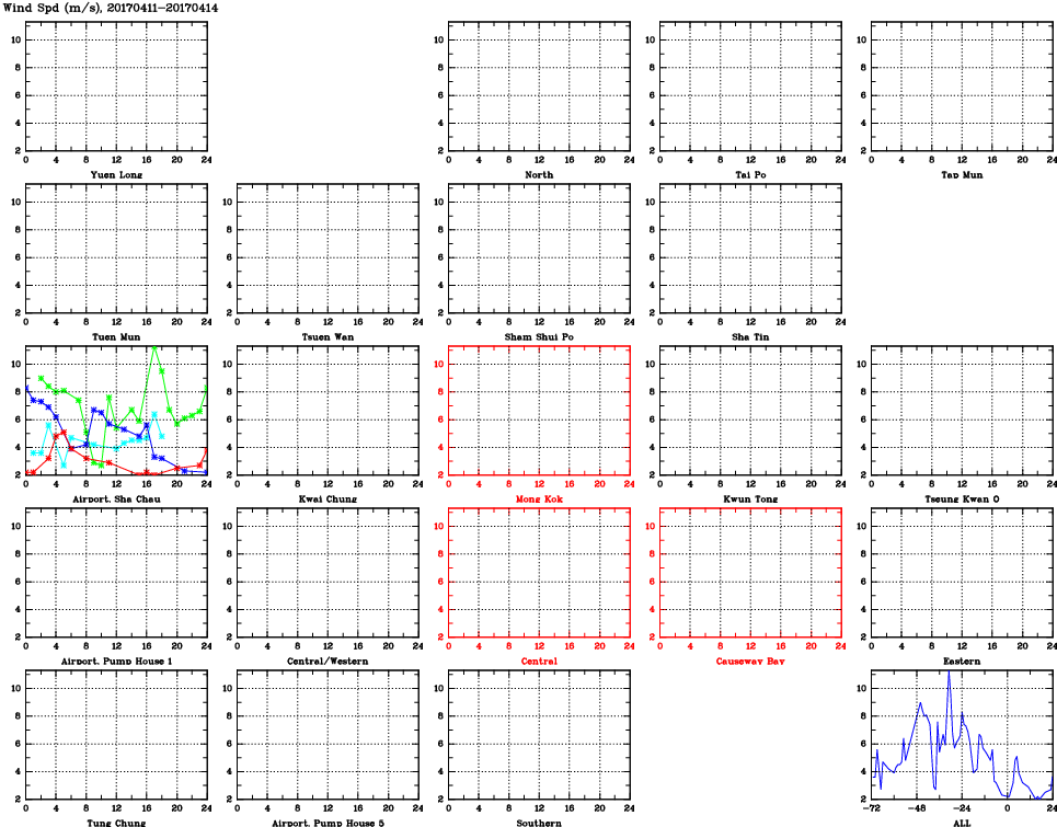 | Air Quality Data Time Series for WS (2017/04/14) | ( Line colors: Day -3 Day -2 Day -1 Current day ) | 2D Map Current AQHI |