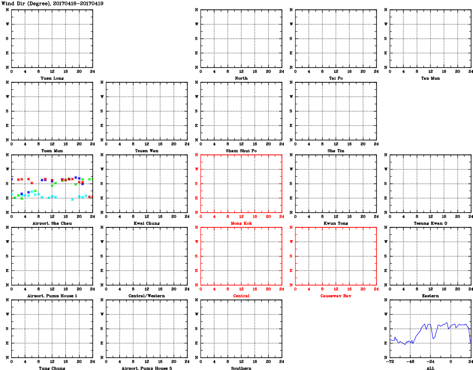 | Air Quality Data Time Series for WD (2017/04/19) | ( Line colors: Day -3 Day -2 Day -1 Current day ) | 2D Map Current AQHI |