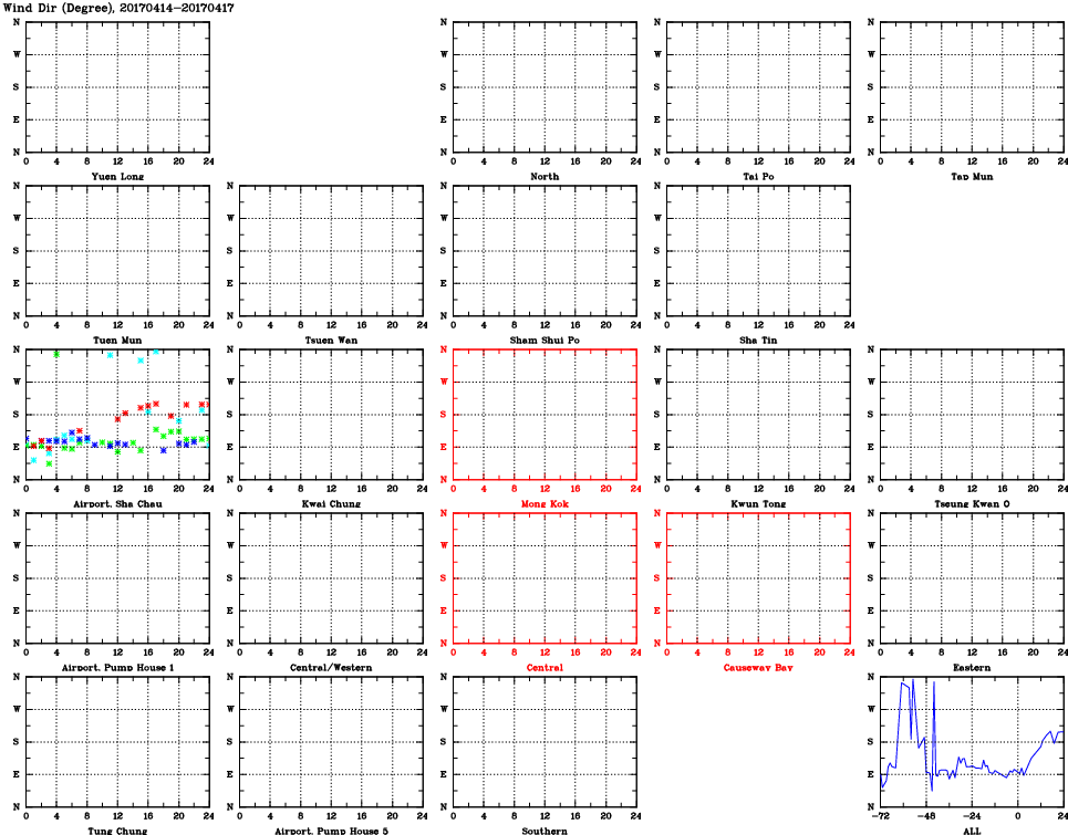 | Air Quality Data Time Series for WD (2017/04/17) | ( Line colors: Day -3 Day -2 Day -1 Current day ) | 2D Map Current AQHI |