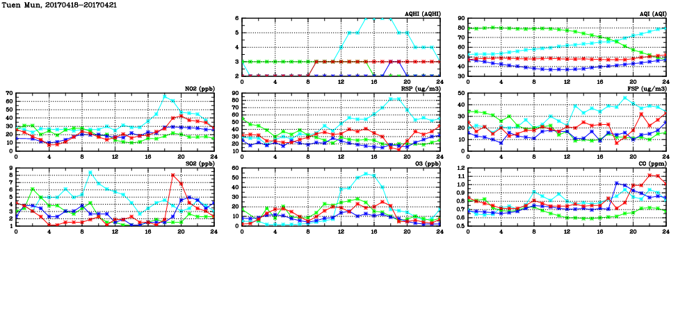 | Parameters: | AQHI | AQI | RSP | FSP | NO2 | SO2 | O3 | CO | Temp | WS | WD |