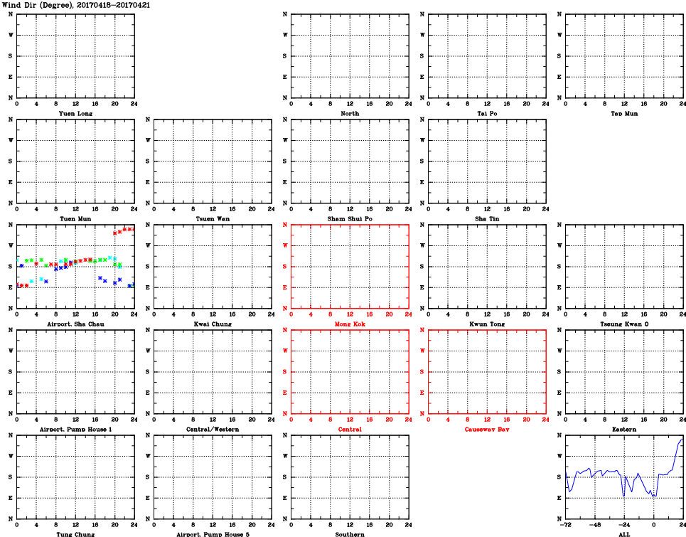 | Air Quality Data Time Series for WD (2017/04/21) | ( Line colors: Day -3 Day -2 Day -1 Current day ) | 2D Map Current AQHI |