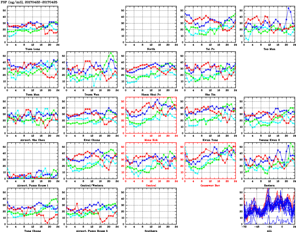 | Air Quality Data Time Series for FSP (2017/04/25) | ( Line colors: Day -3 Day -2 Day -1 Current day ) | 2D Map Current AQHI |