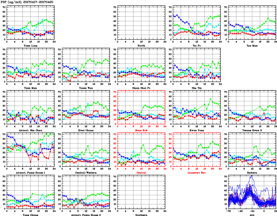 | Air Quality Data Time Series for FSP (2017/04/20) | ( Line colors: Day -3 Day -2 Day -1 Current day ) | 2D Map Current AQHI |