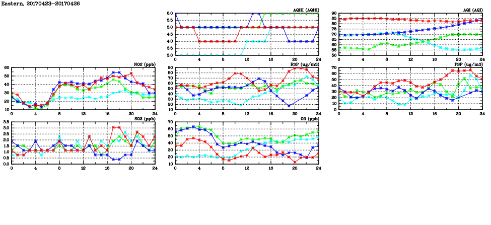 | Air Quality Data Time Series in Eastern (2017/04/26) | ( Line colors: Day -3 Day -2 Day -1 Current day ) | 2D Map Current AQHI |