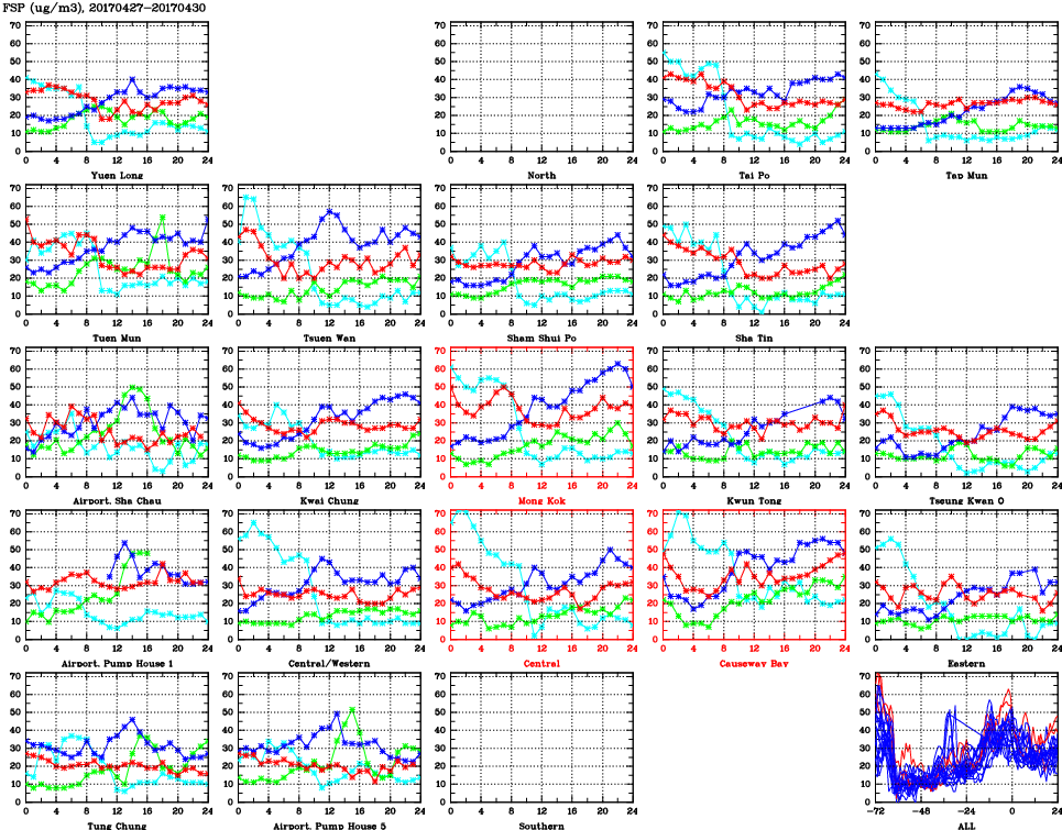 | Air Quality Data Time Series for FSP (2017/04/30) | ( Line colors: Day -3 Day -2 Day -1 Current day ) | 2D Map Current AQHI |