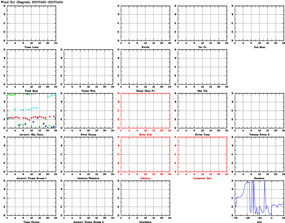 | Air Quality Data Time Series for WD (2017/04/24) | ( Line colors: Day -3 Day -2 Day -1 Current day ) | 2D Map Current AQHI |