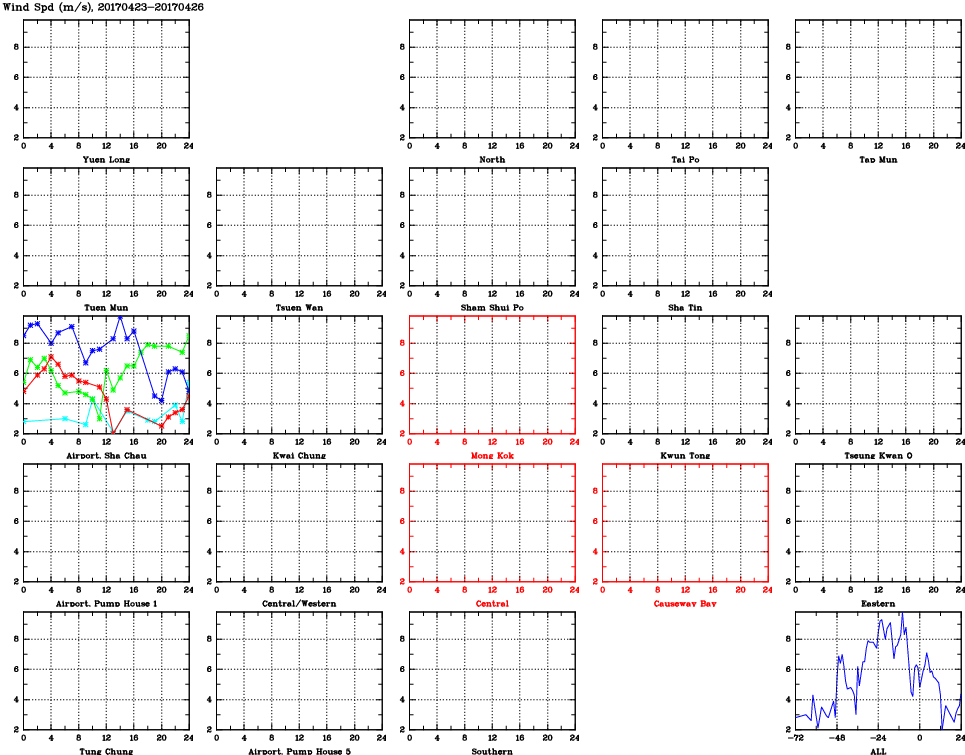 | Air Quality Data Time Series for WS (2017/04/26) | ( Line colors: Day -3 Day -2 Day -1 Current day ) | 2D Map Current AQHI |