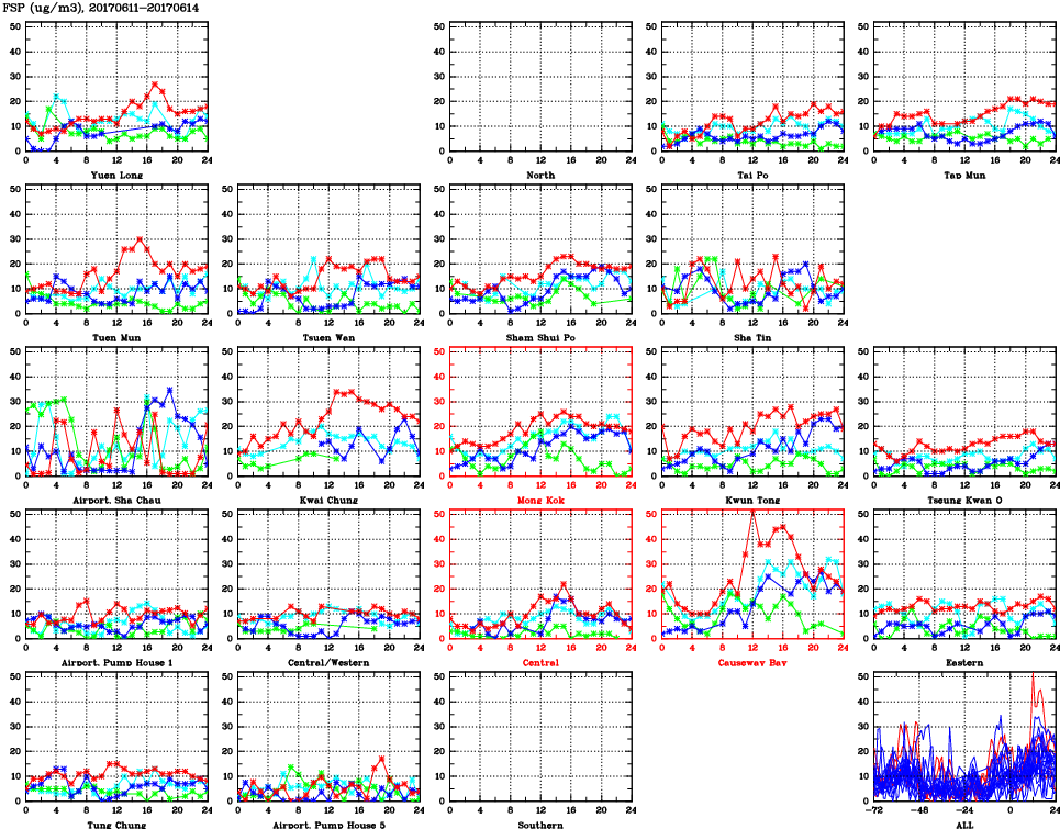 | Air Quality Data Time Series for FSP (2017/06/14) | ( Line colors: Day -3 Day -2 Day -1 Current day ) | 2D Map Current AQHI |