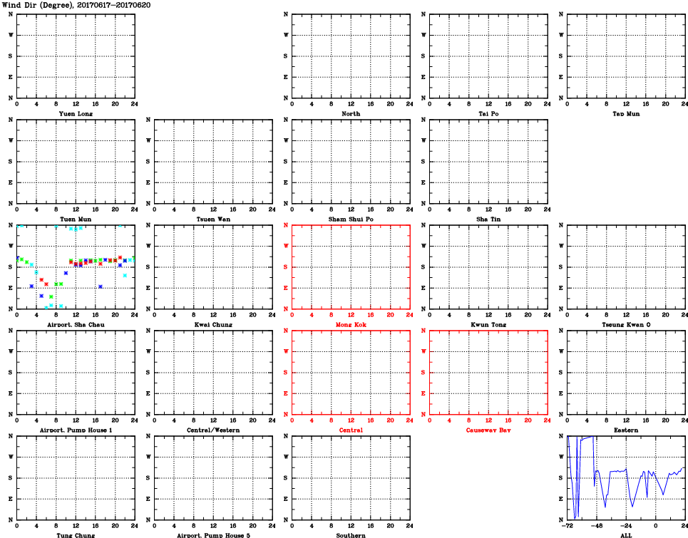 | Air Quality Data Time Series for WD (2017/06/20) | ( Line colors: Day -3 Day -2 Day -1 Current day ) | 2D Map Current AQHI |