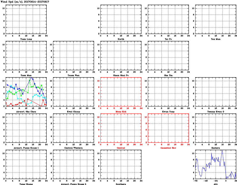 | Air Quality Data Time Series for WS (2017/06/17) | ( Line colors: Day -3 Day -2 Day -1 Current day ) | 2D Map Current AQHI |