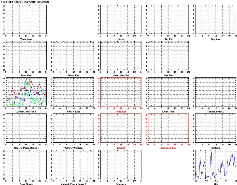 | Air Quality Data Time Series for WS (2017/06/21) | ( Line colors: Day -3 Day -2 Day -1 Current day ) | 2D Map Current AQHI |