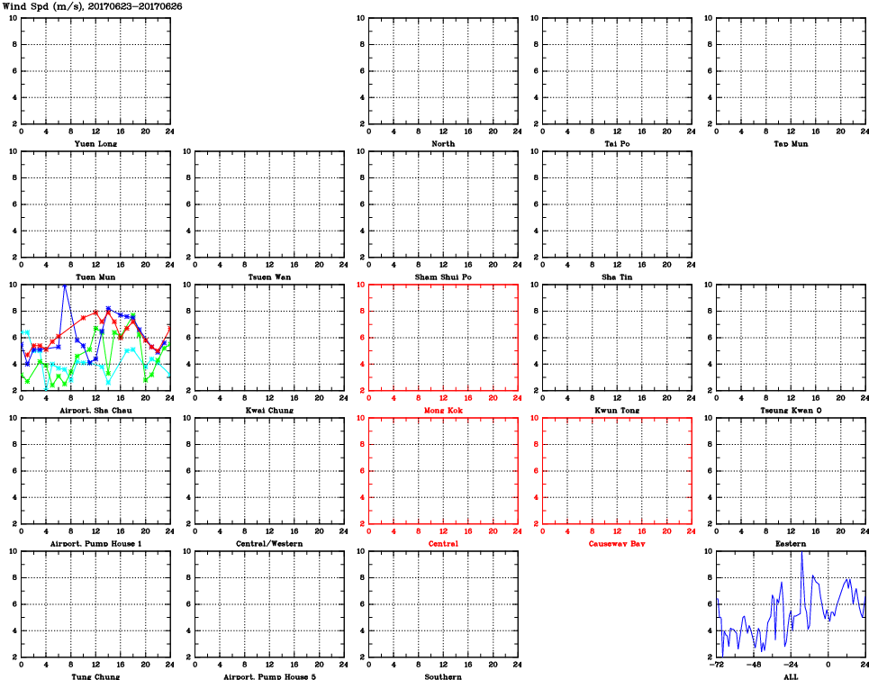 | Air Quality Data Time Series for WS (2017/06/26) | ( Line colors: Day -3 Day -2 Day -1 Current day ) | 2D Map Current AQHI |