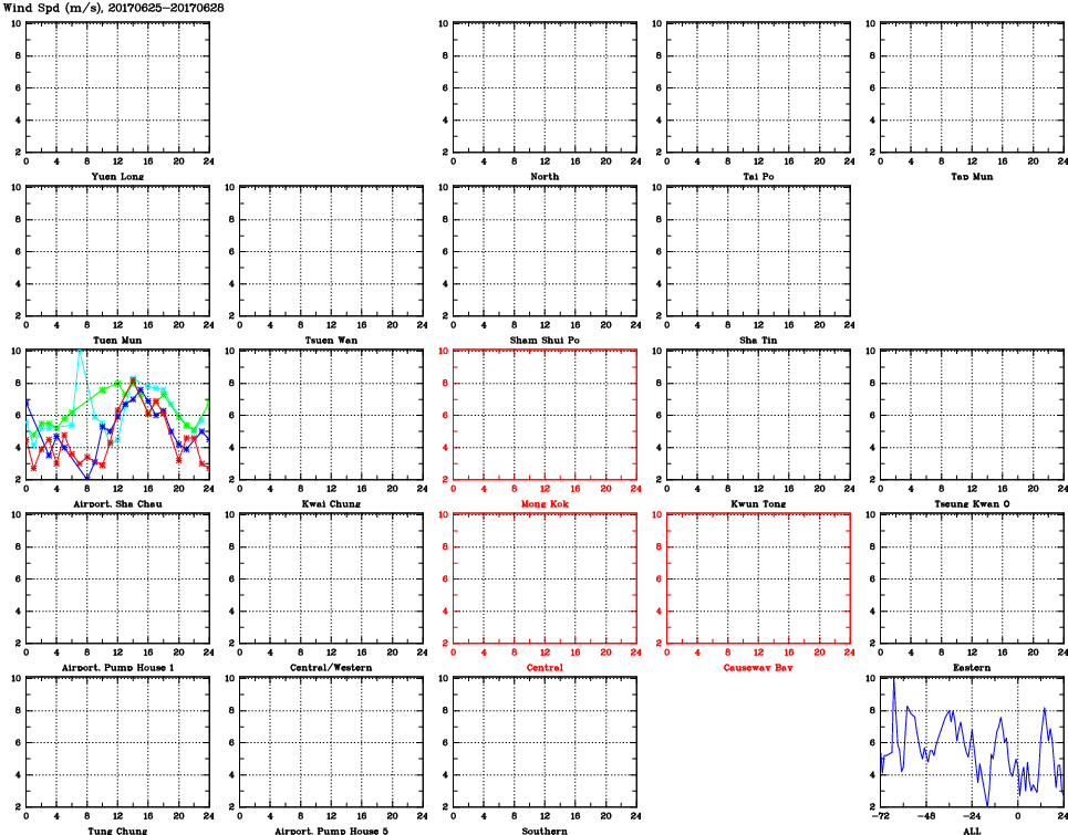 | Air Quality Data Time Series for WS (2017/06/28) | ( Line colors: Day -3 Day -2 Day -1 Current day ) | 2D Map Current AQHI |