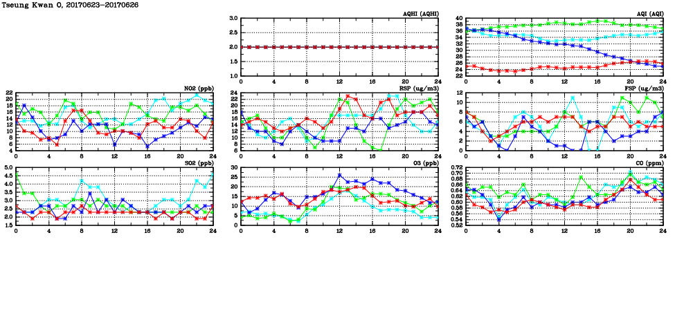| Air Quality Data Time Series in Tseung Kwan O (2017/06/26) | ( Line colors: Day -3 Day -2 Day -1 Current day ) | 2D Map Current AQHI |