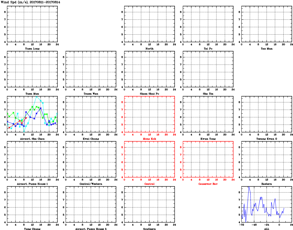 | Air Quality Data Time Series for WS (2017/08/14) | ( Line colors: Day -3 Day -2 Day -1 Current day ) | 2D Map Current AQHI |