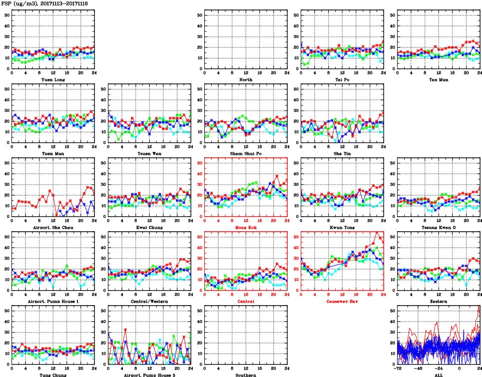 | Air Quality Data Time Series for FSP (2017/11/16) | ( Line colors: Day -3 Day -2 Day -1 Current day ) | 2D Map Current AQHI |