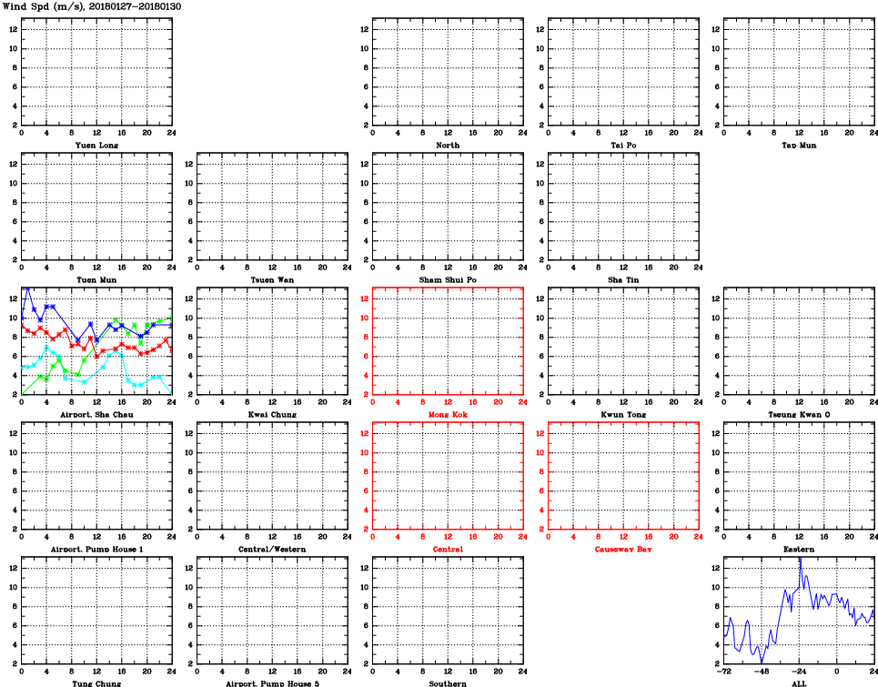 | Air Quality Data Time Series for WS (2018/01/30) | ( Line colors: Day -3 Day -2 Day -1 Current day ) | 2D Map Current AQHI |