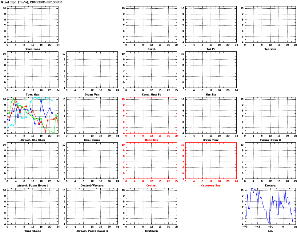 | Air Quality Data Time Series for WS (2018/02/05) | ( Line colors: Day -3 Day -2 Day -1 Current day ) | 2D Map Current AQHI |