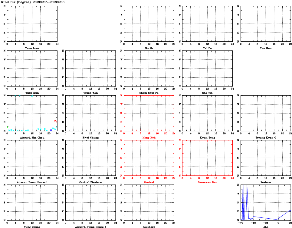 | Air Quality Data Time Series for WD (2018/02/08) | ( Line colors: Day -3 Day -2 Day -1 Current day ) | 2D Map Current AQHI |