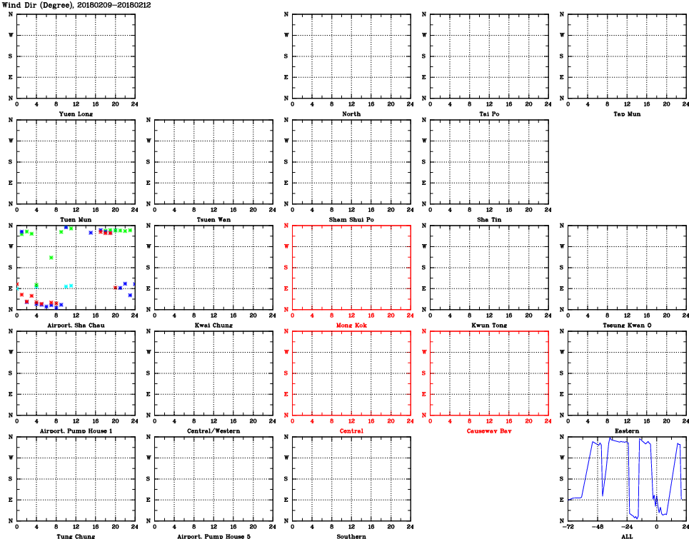 | Air Quality Data Time Series for WD (2018/02/12) | ( Line colors: Day -3 Day -2 Day -1 Current day ) | 2D Map Current AQHI |