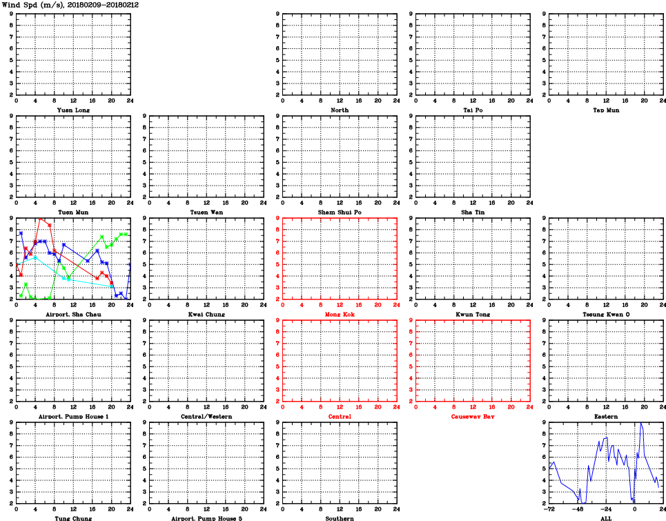 | Air Quality Data Time Series for WS (2018/02/12) | ( Line colors: Day -3 Day -2 Day -1 Current day ) | 2D Map Current AQHI |