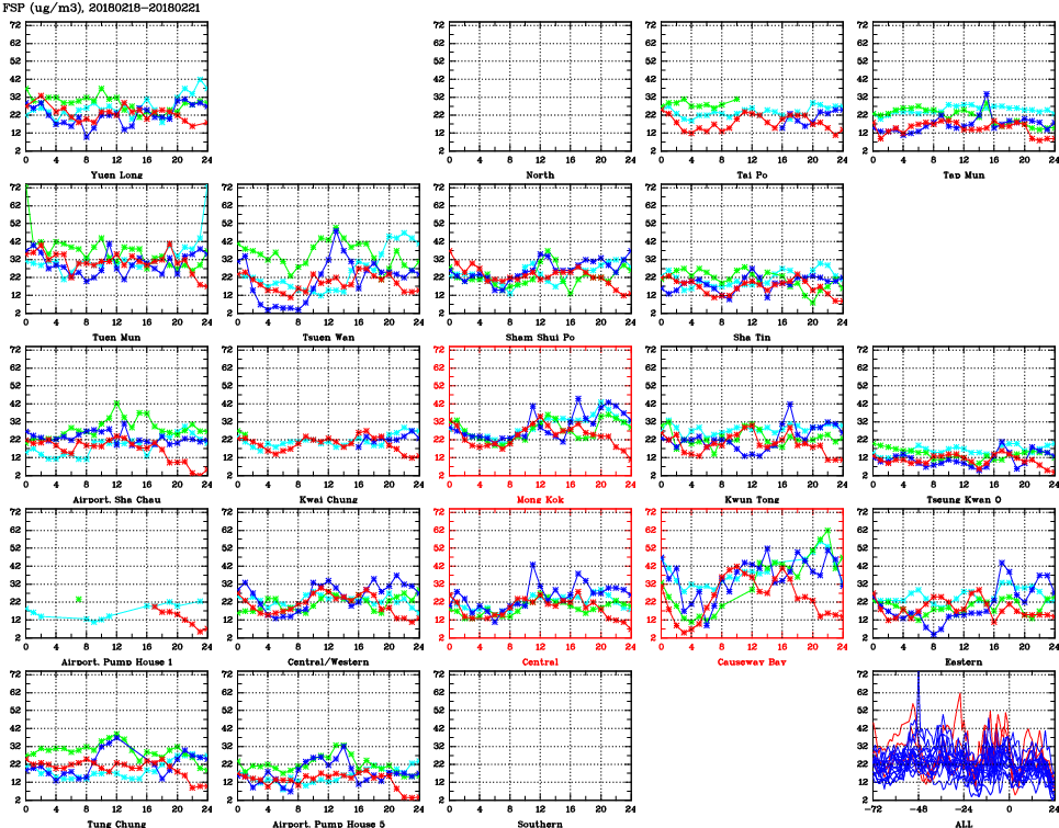 | Air Quality Data Time Series for FSP (2018/02/21) | ( Line colors: Day -3 Day -2 Day -1 Current day ) | 2D Map Current AQHI |