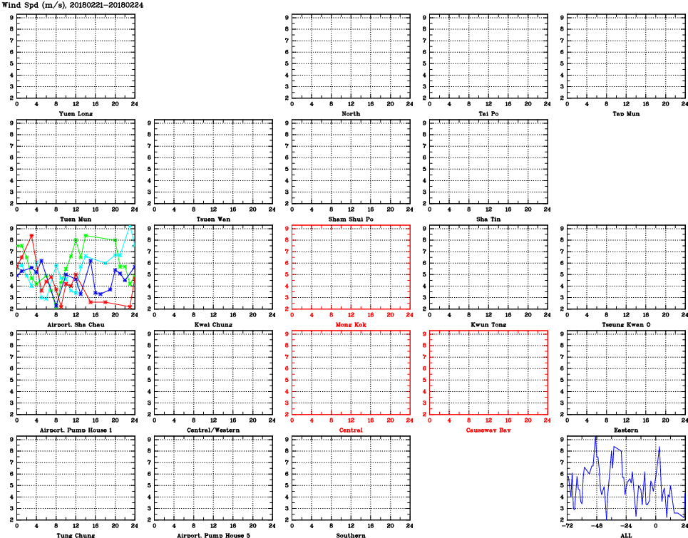 | Air Quality Data Time Series for WS (2018/02/24) | ( Line colors: Day -3 Day -2 Day -1 Current day ) | 2D Map Current AQHI |