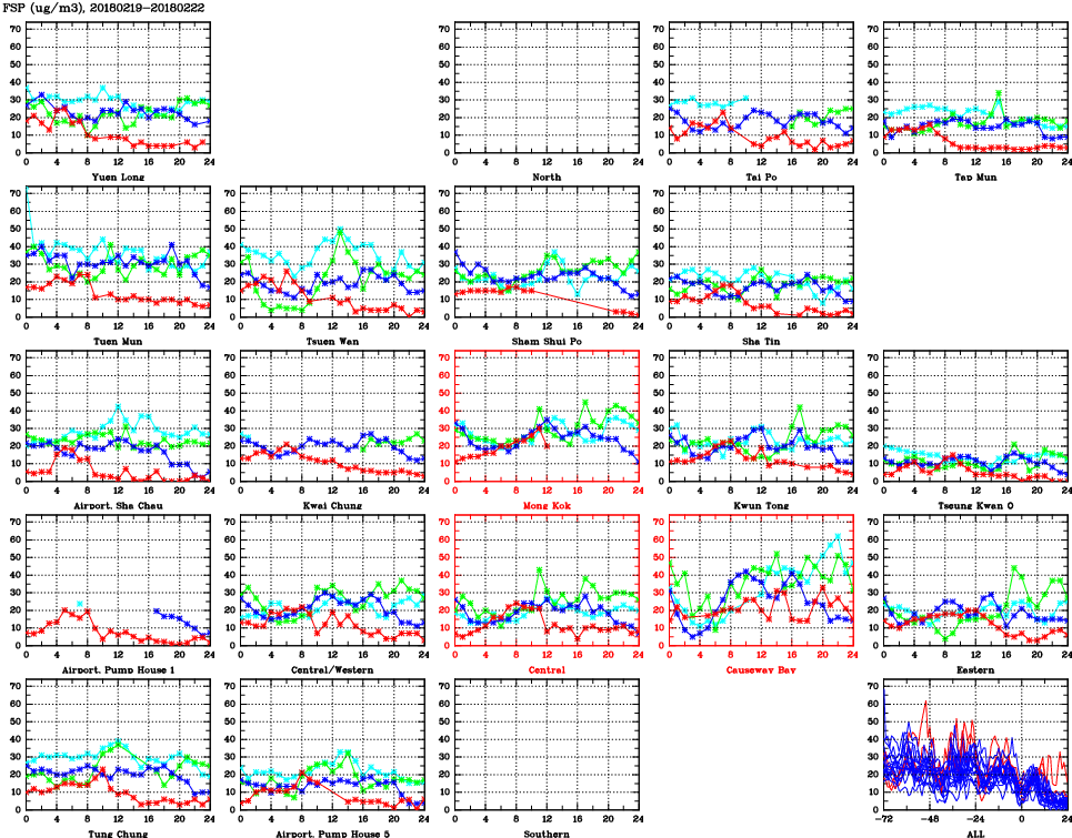 | Air Quality Data Time Series for FSP (2018/02/22) | ( Line colors: Day -3 Day -2 Day -1 Current day ) | 2D Map Current AQHI |