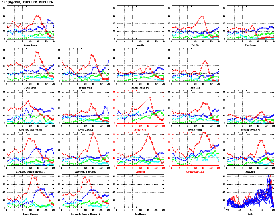 | Air Quality Data Time Series for FSP (2018/02/25) | ( Line colors: Day -3 Day -2 Day -1 Current day ) | 2D Map Current AQHI |
