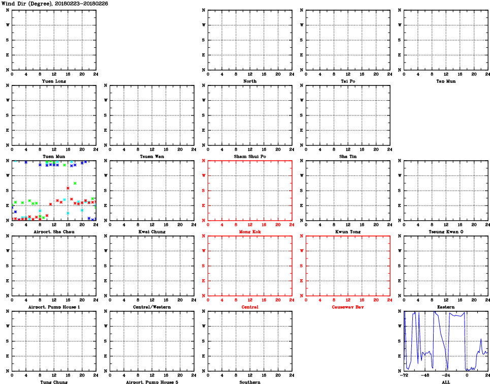 | Air Quality Data Time Series for WD (2018/02/26) | ( Line colors: Day -3 Day -2 Day -1 Current day ) | 2D Map Current AQHI |