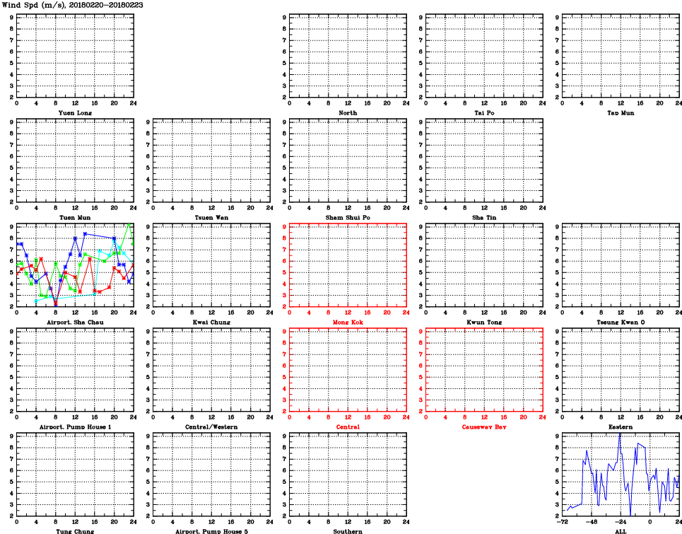 | Air Quality Data Time Series for WS (2018/02/23) | ( Line colors: Day -3 Day -2 Day -1 Current day ) | 2D Map Current AQHI |