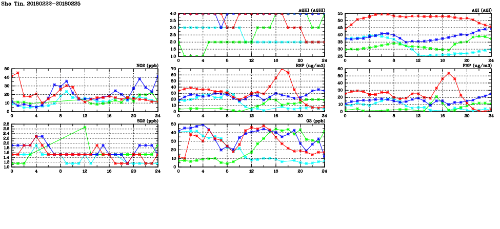 | Air Quality Data Time Series in Sha Tin (2018/02/25) | ( Line colors: Day -3 Day -2 Day -1 Current day ) | 2D Map Current AQHI |
