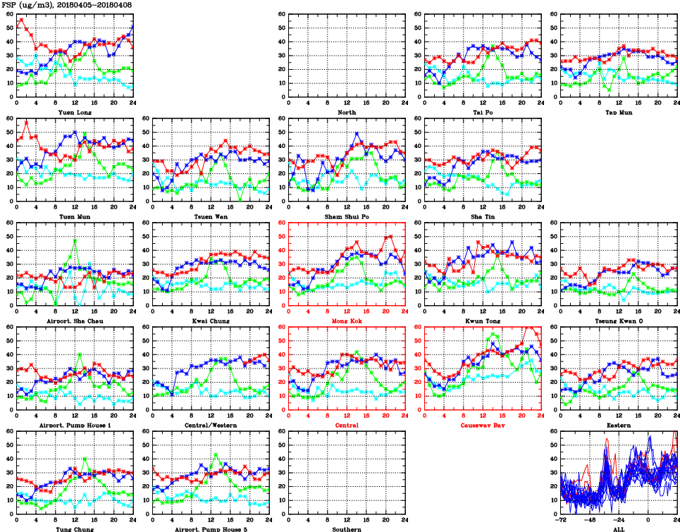 | Air Quality Data Time Series for FSP (2018/04/08) | ( Line colors: Day -3 Day -2 Day -1 Current day ) | 2D Map Current AQHI |