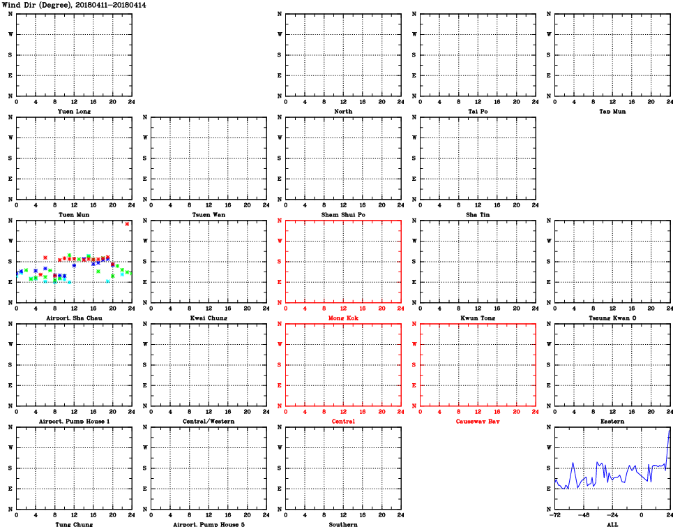 | Air Quality Data Time Series for WD (2018/04/14) | ( Line colors: Day -3 Day -2 Day -1 Current day ) | 2D Map Current AQHI |