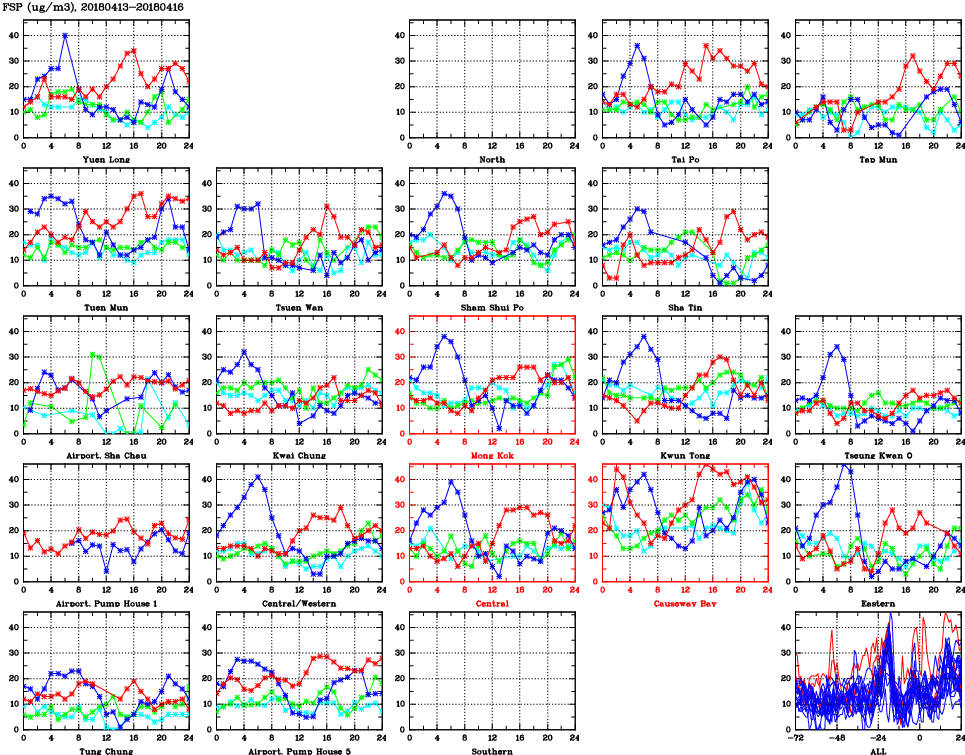 | Air Quality Data Time Series for FSP (2018/04/16) | ( Line colors: Day -3 Day -2 Day -1 Current day ) | 2D Map Current AQHI |