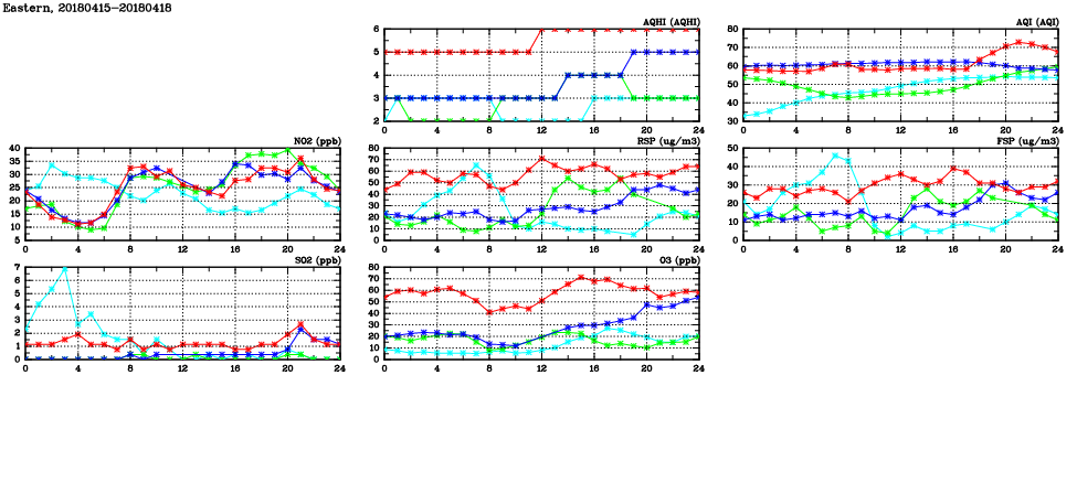 | Air Quality Data Time Series in Eastern (2018/04/18) | ( Line colors: Day -3 Day -2 Day -1 Current day ) | 2D Map Current AQHI |