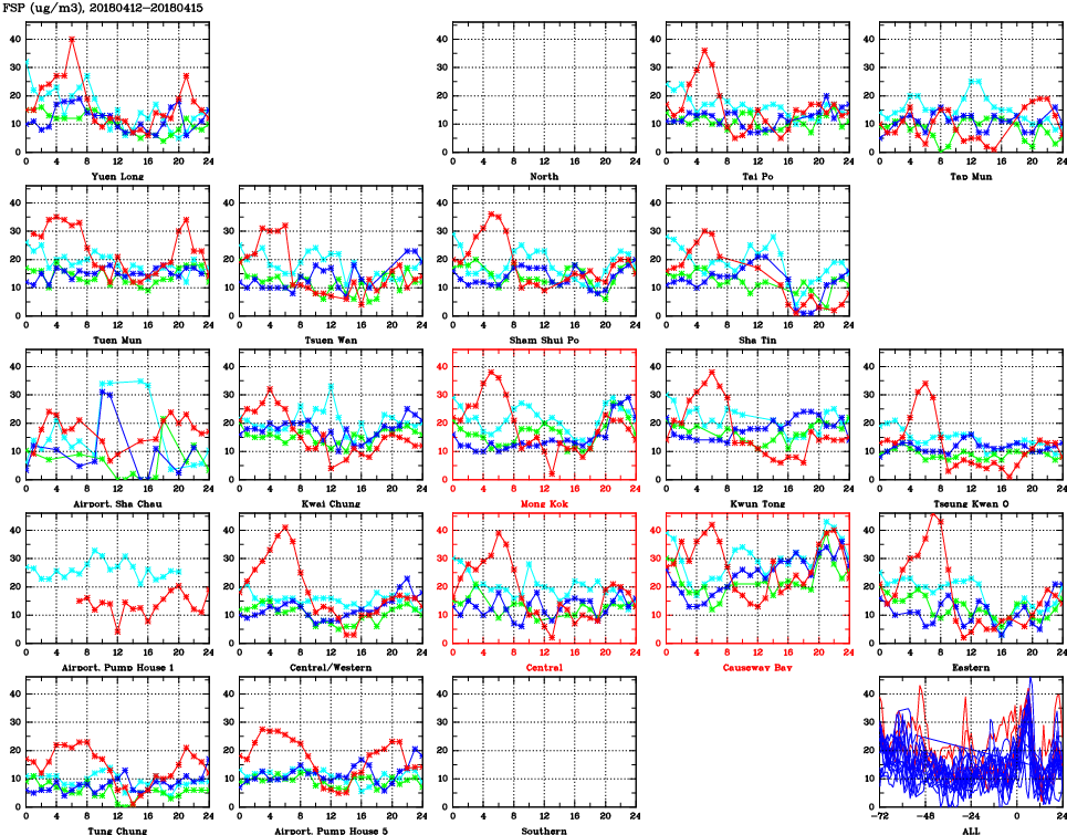 | Air Quality Data Time Series for FSP (2018/04/15) | ( Line colors: Day -3 Day -2 Day -1 Current day ) | 2D Map Current AQHI |