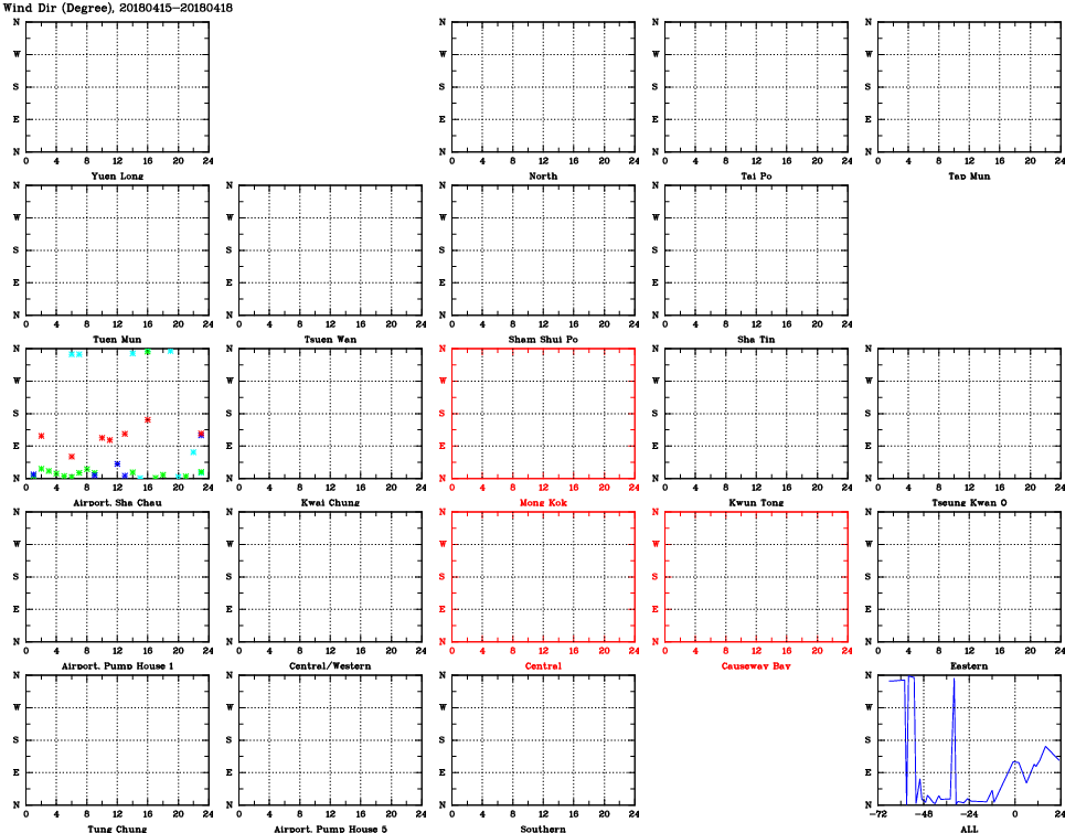 | Air Quality Data Time Series for WD (2018/04/18) | ( Line colors: Day -3 Day -2 Day -1 Current day ) | 2D Map Current AQHI |