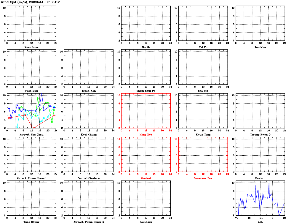 | Air Quality Data Time Series for WS (2018/04/17) | ( Line colors: Day -3 Day -2 Day -1 Current day ) | 2D Map Current AQHI |