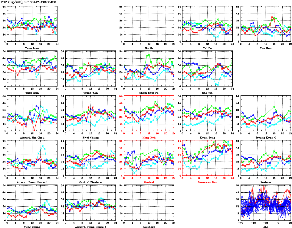 | Air Quality Data Time Series for FSP (2018/04/20) | ( Line colors: Day -3 Day -2 Day -1 Current day ) | 2D Map Current AQHI |