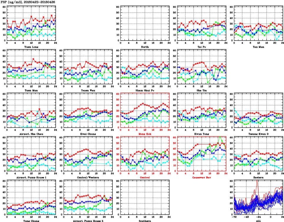 | Air Quality Data Time Series for FSP (2018/04/26) | ( Line colors: Day -3 Day -2 Day -1 Current day ) | 2D Map Current AQHI |