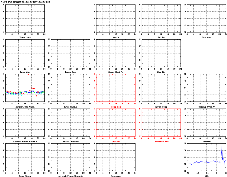 | Air Quality Data Time Series for WD (2018/04/22) | ( Line colors: Day -3 Day -2 Day -1 Current day ) | 2D Map Current AQHI |