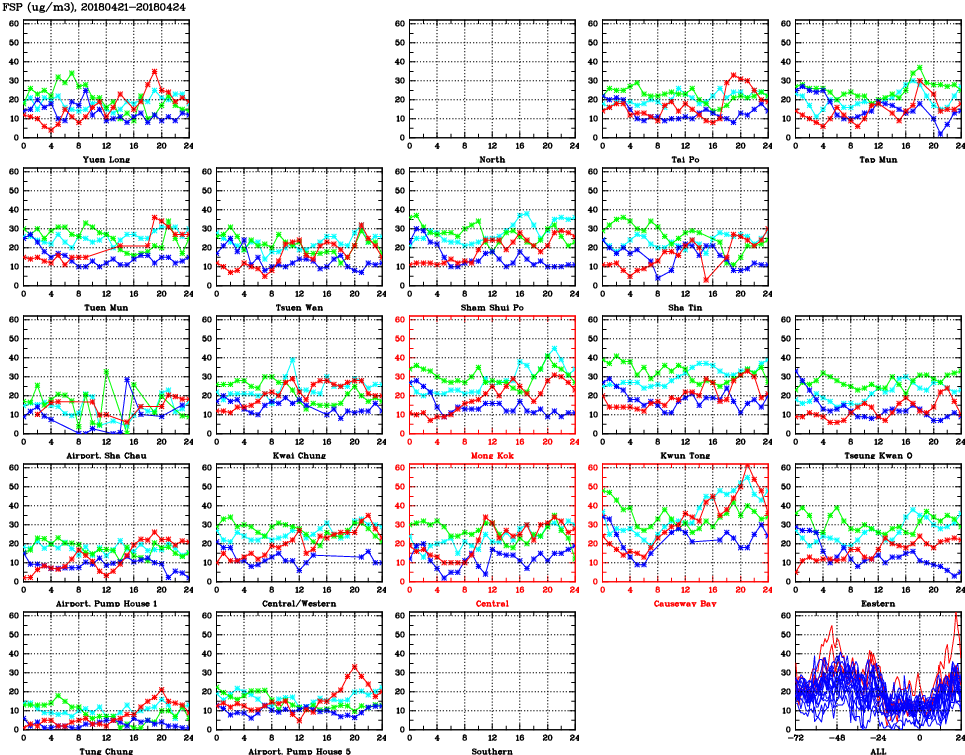 | Air Quality Data Time Series for FSP (2018/04/24) | ( Line colors: Day -3 Day -2 Day -1 Current day ) | 2D Map Current AQHI |