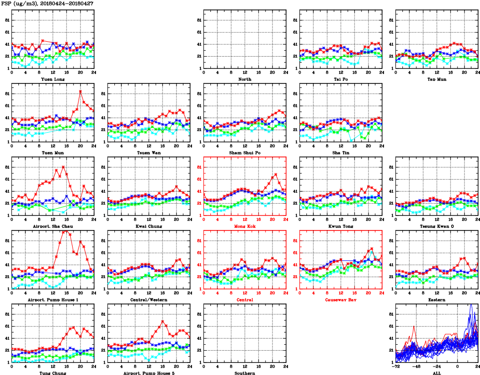 | Air Quality Data Time Series for FSP (2018/04/27) | ( Line colors: Day -3 Day -2 Day -1 Current day ) | 2D Map Current AQHI |
