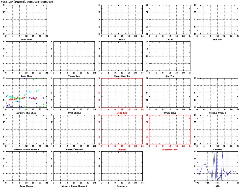 | Air Quality Data Time Series for WD (2018/04/26) | ( Line colors: Day -3 Day -2 Day -1 Current day ) | 2D Map Current AQHI |