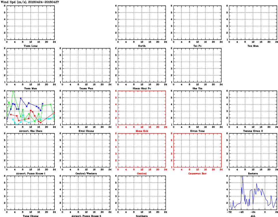 | Air Quality Data Time Series for WS (2018/04/27) | ( Line colors: Day -3 Day -2 Day -1 Current day ) | 2D Map Current AQHI |