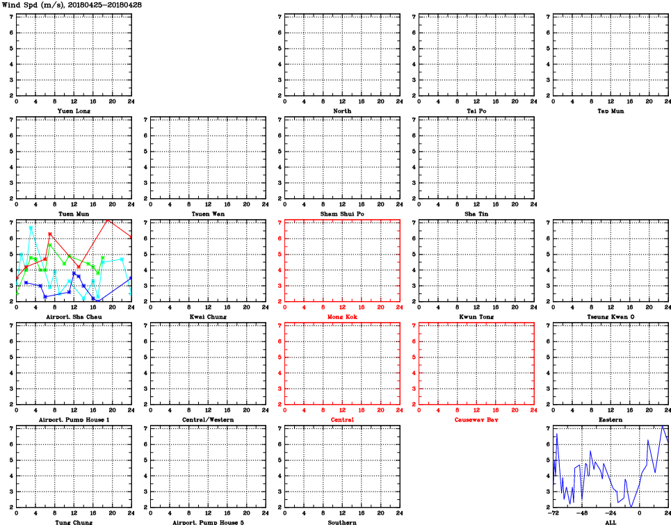 | Air Quality Data Time Series for WS (2018/04/28) | ( Line colors: Day -3 Day -2 Day -1 Current day ) | 2D Map Current AQHI |